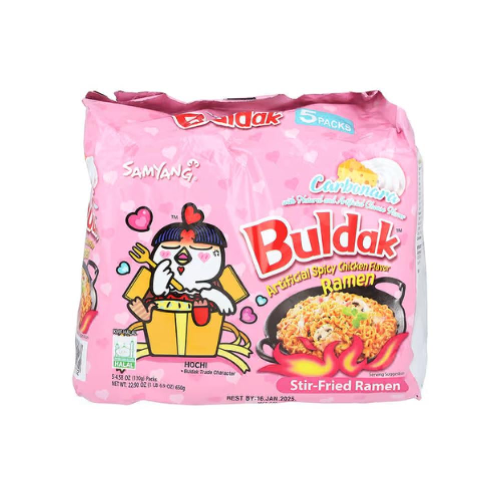 🍜 بولداك ساميانغ نودلز – دجاج حار كاربونارا وردي 130 جرام استمتع بتجربة فريدة مع أشهر نودلز كوري في العالم! بولداك ساميانغ يقدم لك مزيجاً مدهشاً يجمع بين حرارة الدجاج الحار الكوري ولمسة والكريمي ناعمة من صلصة الكاربونارا، بلون وردي جذاب يفتح الشهية.